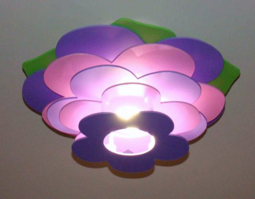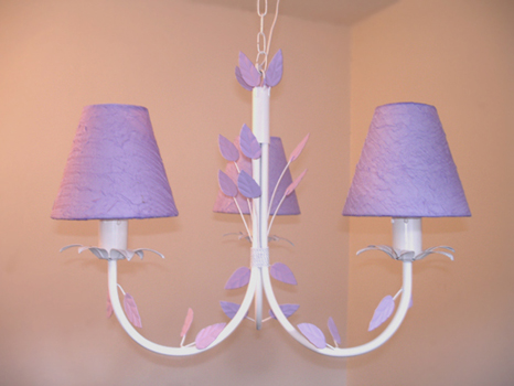 Para quartos de meninas, o lustre pode ter enfeites e ser de uma cor feminina, como rosa ou lilás, porem tem sempre que combinar com as cores do quarto.
